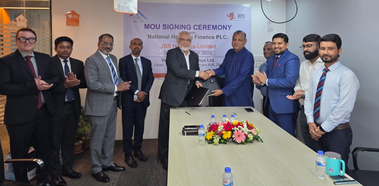Mr. Mohammad Shamsul Islam, Managing Director, National Housing Finance PLC (NHFPLC) and Mr. Abdul Huque, Managing Director, JBS Holdings Ltd. signed the MoU on behalf of respective companies.